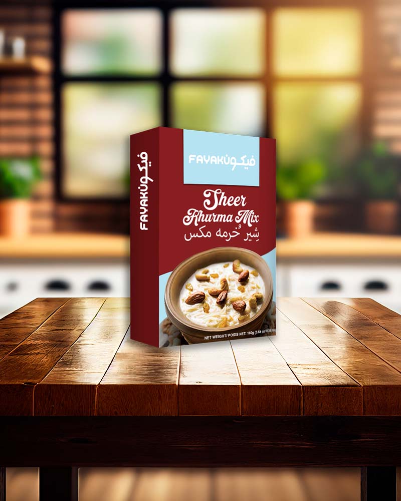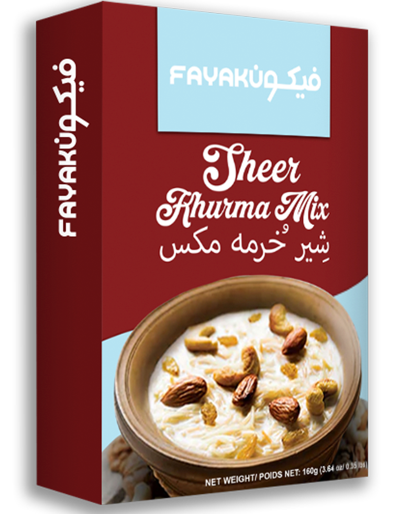 Fayakun Sheer Khurma is a delightful dry blend of processed vermicelli, sugar, pistachios, almonds, cardamom, and permitted food flavors. A traditional festive dessert, it brings rich taste and authentic aroma to your table, making every occasion truly special.